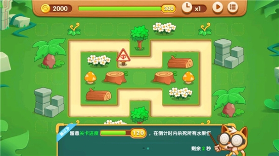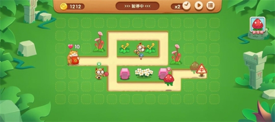 自由路径关卡:没有固定的路径,怪物可以在场景中自由寻路,在地图中放置猫咪可以阻挡怪物前进。