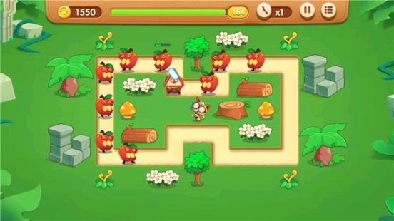 Q萌可爱的水果怪物,分为均衡、肉盾、速度、聚集、飞行等几个大类,为了杜绝千篇一律,我们设计了四十余种水果怪物,每一种怪物都会根据该水果的特征来设计怪物的场景表现和怪物技能,甚至会根据不同的场景地形改变怪物的特点和属性。除此之外,每个主题场景中都设计了两个强大的BOSS,所有BOSS都拥有独一无二的机制和玩法,例如会吞噬其他水果增强自己的贪食葡萄蛇、会从嘴里不短突出石榴籽小兵的石榴王等,如何击败强大的水果BOSS,成为通关道路上必须解决的难题。