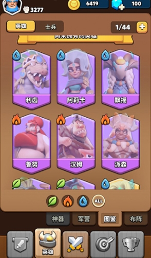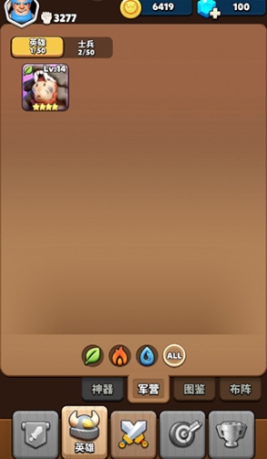 玩家在军营可以看到自己已拥有的士兵和英雄。