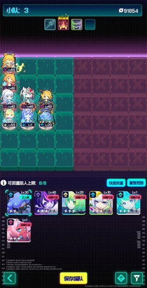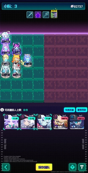 这是一款视觉吸引人且操作轻松的二次元放置游戏,其整体美术风格融合了美式卡通和日系赛璐璐,并借鉴了扳机社的表现手法,使用了大量的红/粉/紫霓虹撞色设计,且饱和度很高。然而,这些撞色并不显得突兀,反而非常符合其“异星”的背景设定。相较于国服版本,该游戏拥有更高色彩饱和度的配色方案,加上大面积色块的应用,给玩家带来强烈的视觉冲击。从美术风格选择来看,该游戏展现了全球化视野,美式卡通风格在欧美受欢迎,而日系赛璐璐风格和扳机社风格在亚洲地区也很流行,这两种风格的无缝结合达到了1+1>2的效果。此外,游戏的核心玩法包括休闲放置和策略自走棋,主要乐趣在于角色收集和培养。战前的深度布局和角色大招设计,以及后期解放双手的放置攻击和跳格子的移动方式,都极大地丰富了游戏体验。