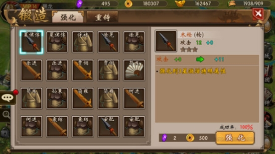 可以对目前所拥有的装备进行强化和重铸。
