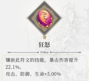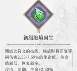 绝境回生符文:初级为紫色,中级为橙色。生命值越低,恢复越多。这个符文放在任何伤害阵容都能增加生存概率,狂战的特性和这个符文也非常的契合,很适合PVP时使用。