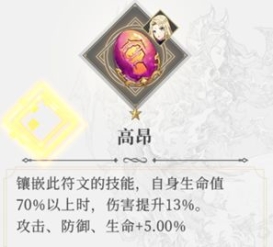 高昂符文:橙色符文,这个符文目前作用有限,维持一个高血量来保证伤害的打法在目前版本的节奏下似乎比较难做到。这个符文的作用还有待后续开发,新手可以先跳过。