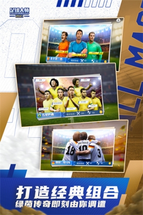5、球员全明星阵容,甚至连退役的知名球员也将在游戏中以巅峰状态重返绿茵场。游戏亮点
