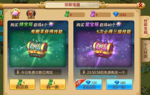 4、皇宫宝藏中也可以抽取到4级技能跟技能兑换石。