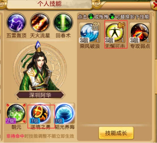 2、主公跟武将都有自己的专属技能,专属技能也可以升级,分为5个档次,效果逐级增加。