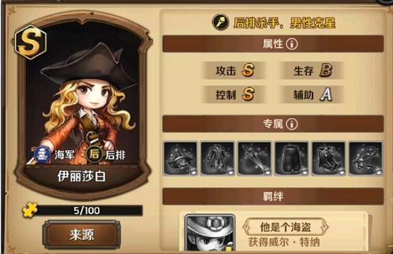 评价:伊丽莎白作为游戏首充赠送的S级英雄,入手难度较低。伊丽莎白的技能大幅度强化了对男性敌人的攻击效果,在对男性敌人的战斗中能发挥出超常的实力。在游戏前期的难度副本中,还在为三星奖励忧愁的船长们有了伊丽莎白的帮助获得奖励也是轻而易举的。同时作为影片中的女主角,怎么可以错过呢!加勒比海盗启航教你如何快速升级