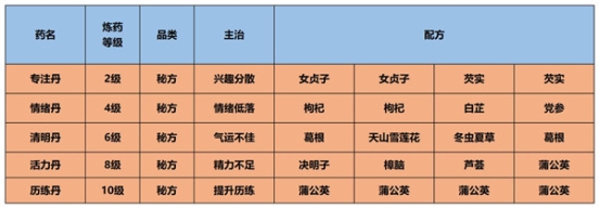 常规丹药炼药等级1级,可炼制弱效药,主治一级及以下症状