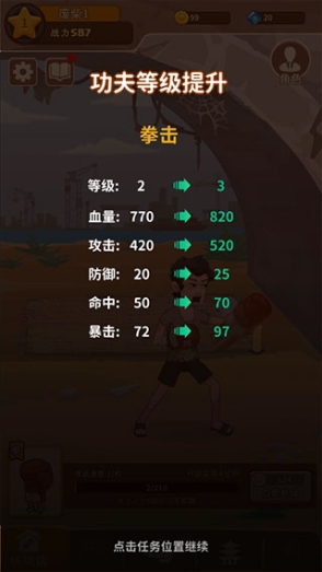 3、你完成的任务越多,你解锁的功夫技能就越多,你的战斗力也就越强。