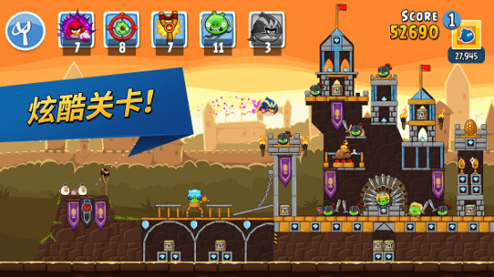 这是一款益智休闲游戏,描述了一群坏猪偷走了小鸟的鸟蛋,引发小鸟们展开报复的故事。在游戏中,小鸟们利用弹弓把自己弹射出去,攻击猪猪建造的堡垒。猪猪们可以使用掉落的木头砸小鸟,也可以被小鸟触碰致死。消灭每个关卡中的所有猪猪即为过关。使用的小鸟越少,破坏的物品越多,得分也就越高。