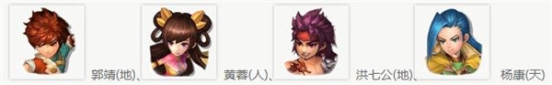 郭靖(地)、黄蓉(人)、洪七公(地)、 杨康(天)