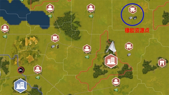 除军事建筑外,其他资源建筑也要抢占先机。优先抢占城市之间的橡胶资源点,此资源点为前期主要资源且数量较少。