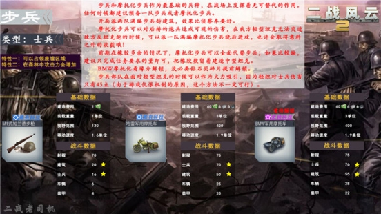 1、步兵作为战场上最重要、最前期的兵种,玩家了解也是最多的,毕竟不一定造得到虎式,但一定能造出步兵。