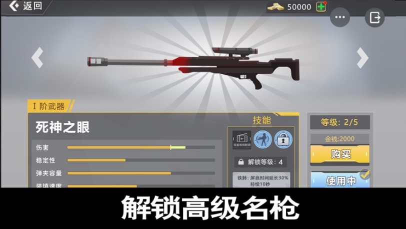 *攻克各类不同难度的关卡,成为顶尖的火柴人狙击高手,展现你的狙击才华和技艺。