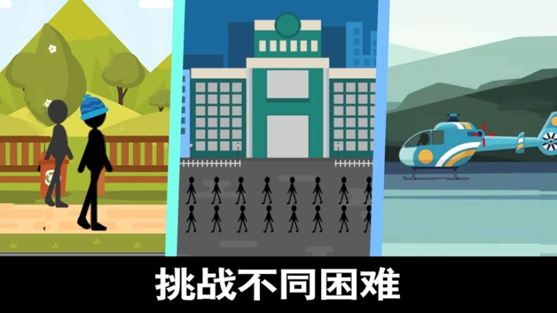 2、独特的火柴人射击手游,以火柴人为 主角 ,在各个场景中完成任务目标的狙击暗杀。