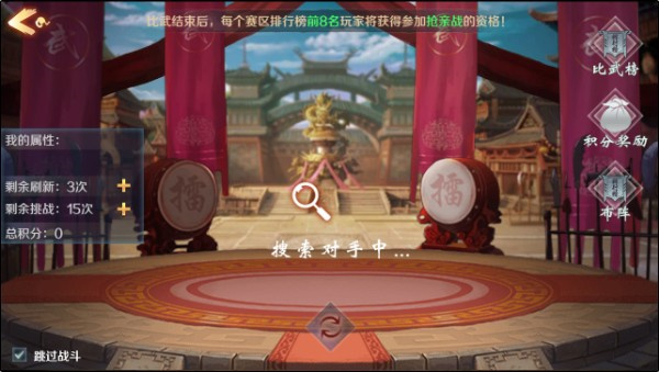 2、比武结束后,每个赛区排行榜前8名玩家将获得抢亲战资格。